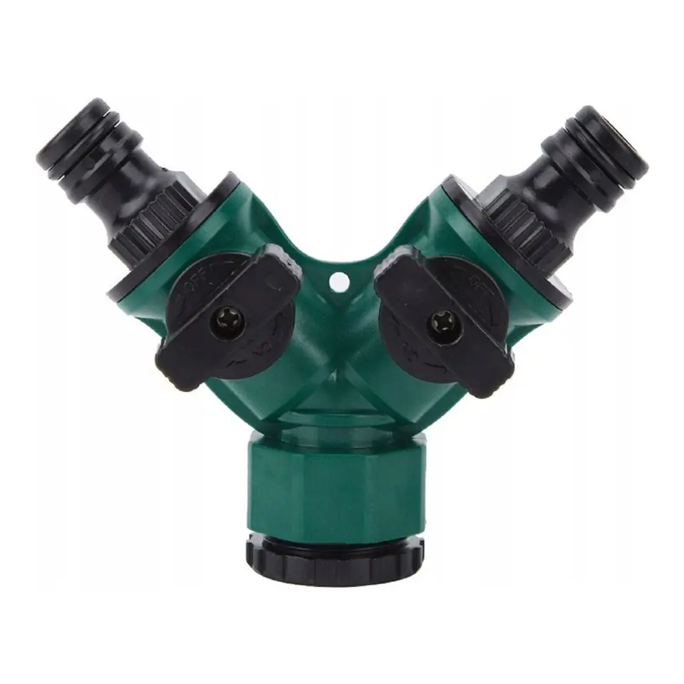 ROZDZIELACZ NA WĄŻ OGRODOWY Z ZAWORAMI TRÓJNIKSpecyfikacja: Specyfikacja: Kształt: TrójnikKolor: Zielony/CzarnyMateriał: Tworzywo sztuczne/ PlastikWymiary: ok 9 cmIdealny do ogrodów oraz działek