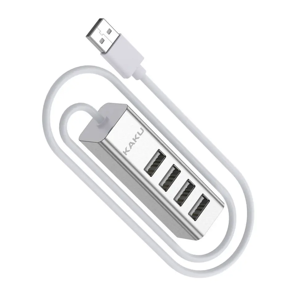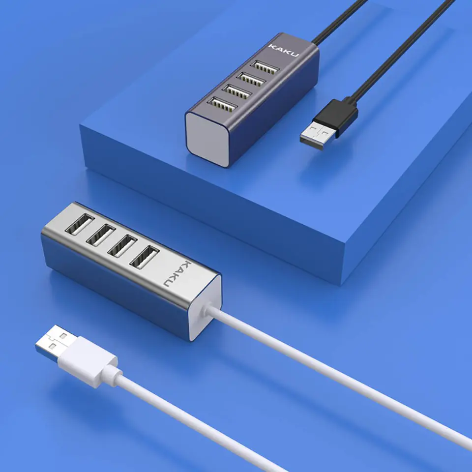 - Praktyczny hub z wtyczką USB 2.0 i 4 złączami USB (4x USB 2.0). Doskonałe akcesorium dla wszystkich cierpiących na chroniczny brak portów w swoich komputerach. Gadżet umożliwiający podpięcie pendrive’ów, dysków zewnętrznych i innych gdy wszystkie złącza USB w naszym sprzęcie są już zajęte.