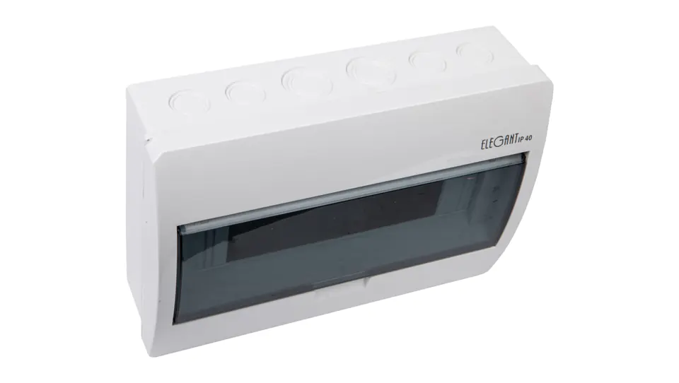 Rozdzielnica modułowa 1x12 natynkowa IP40 RN N+PE biała drzwi transparentne dymne Elegant 2403-01