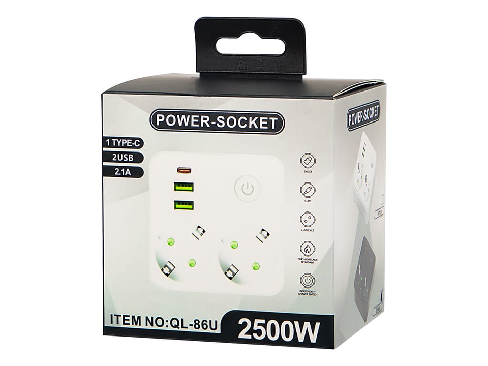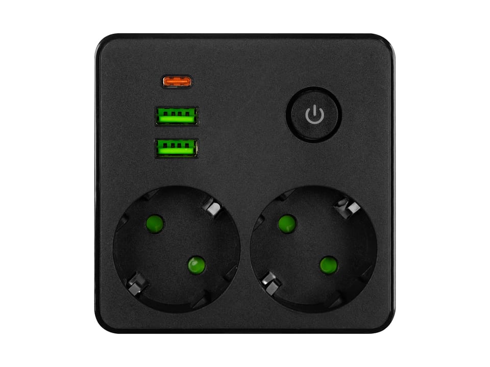 Rozgałęźnik PS-210 2-Gniazda 2xUSB+USB-C czarny