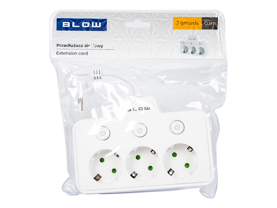 Rozgałęźnik PS-310 3-Gniazda 0.1m biały 3x1mm przedłużacz