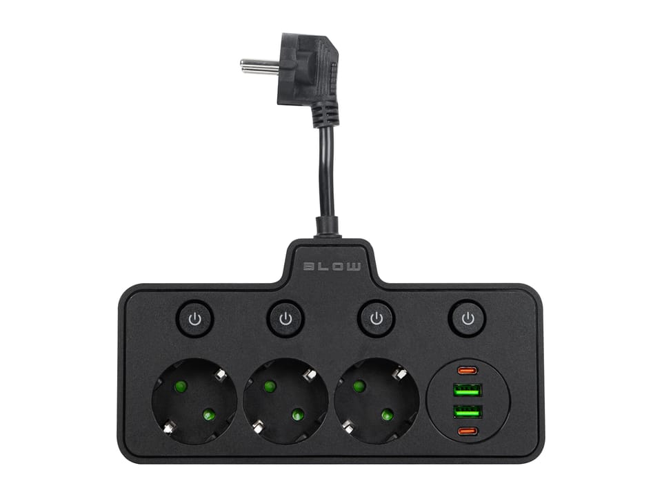 Rozgałęźnik PS-310 3-Gniazda+2xUSB+2xUSB-C 0.1m czarny 3x1mm przedłużacz