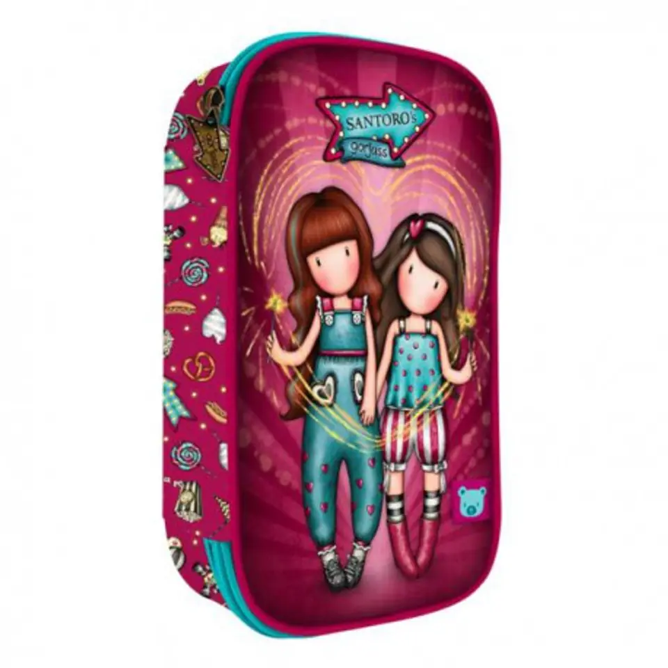 Rozkładany, 4-Częściowy Piórnik z Wyposażeniem - Gorjuss - Fireworks Fantastyczna seria Fireworks ozdobiona jest dziewczynkami Gorjuss z świecącymi fajerwerkami, na tle w kolorze burgundu, rozjaśniona pastelową zielenią. Na odwrocie fajerwerki, kolorowe girlandy, cukrowa wata - wszystko co znajdziemy w wesołym lunaparku. Piękny piórnik z bogatym wyposażeniem będzie Ci towarzyszył przez wiele lat. Zawiera ołówek HB, komplet 3 długopisów kulkowych w trzech kolorach, gumkę i temperówkę. Na specjalnej usztywnionej wkładce umieszczono bogaty komplet 18 kredek. Po otwarciu rzepów znajdziemy linijkę, ekierkę i kątomierz. Na dnie komplet 18 flamastrów. Każdy element wyposażenia posiada logo Santoro. Wykonany ze szczególną dbałością. Wewnątrz posiada ciekawy wzór. Wspaniały na prezent. Wymiary: 12,5 cm x 22 cm x 6,5 cm. Zabawna kolekcja Fairground pełna plecaków, akcesoriów i artykułów papierniczych, która nawiązuje do tajemniczych przygód przeżytych w Wesołym Miasteczku pełna fajerwerków, karuzel, beczek śmiechu, huśtawek i zdobywanych nagród. Zabawne pompony, wzory pełne smakołyków czy metalowe zawieszki przeniosą nas do barwnego świata Santoro, pełnego niespodzianek jakie nas czekają w lunaparku. To kolekcja, którą będziemy cenić przez wiele lat. Podążaj za dziewczynami, bohaterkami 4 serii: Up & Away, Fireworks, Carusel i First Prize i odkrywaj ekscytującą kolekcję cudownych słodyczy! 1046GJ11