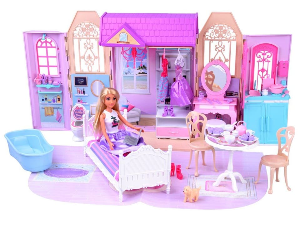 Rozkładany Domek dla Lalki 30 cm - przenośny zestaw z akcesoriami