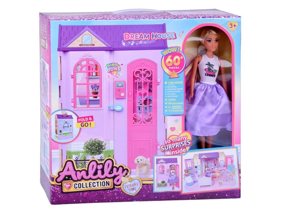 Ponadto w zestawie znajduje się również lalka. Anlily to klasyczna piękność, obdarzona dużymi, piwnymi oczami oraz subtelnym uśmiechem. Jej długie, jasne włosy są idealne do czesania i układania fryzur. Dzięki kilku sukienkom oraz butom można tworzyć różnorodne stylizacje.