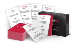 OH YES! to 4 talie, z których losujesz po jednej karcie. Ich kombinacja układa się w scenariusz pieszczot, który w kolejnym kroku realizujesz:1. Wyłóż kartę z talii “JAK?”, która powie Ci jaką pozycję ma przyjąć Twoja druga połówka...2. Następnie dodaj kartę z talii “CZYM?”, która powie Ci, czego użyjesz do sprawiania przyjemności...3. Kolejno wylosuj kartę “GDZIE?”, by dowiedzieć na jakim obszarze ciała powinieneś się skupić.4. Podkręć atmosferę dodając jeszcze jedną kartę z talii “GADŻET!”, która da Wam dodatkową możliwość użycia akcesoriów zwiększających przyjemność!