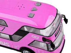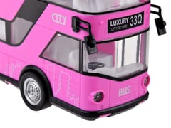 Wesoły różowy piętrowy autobus na pewno przyciągnie wzrok nie jednego małego kierowcy i fana tych pojazdów. Ten realistyczny piętrowy autobus wykonany został z dużą precyzją w przyjemnym różowym kolorze w całości z plastiku. Autobus gwarantuje świetną zabawę, dzięki efektom dźwiękowym oraz świetlnym. Autobus posiada otwierane drzwi, a za przeszklonymi szybami znajdują się fotele i kierownica, co sprawia zabawę jeszcze bardziej realistyczną. Dużą zaletą autobusu jest funkcja wprawienia w ruch. Wystarczy pociągną zabawkę po podłożu w tył lub przód i autobus zacznie jechać.