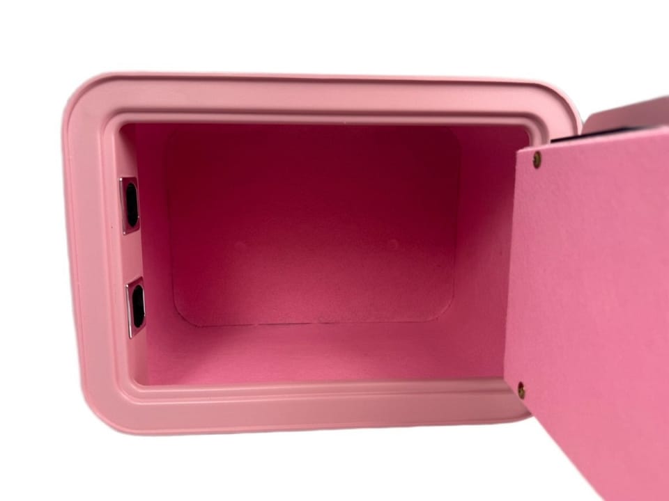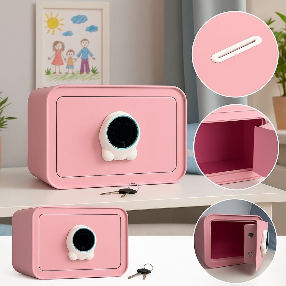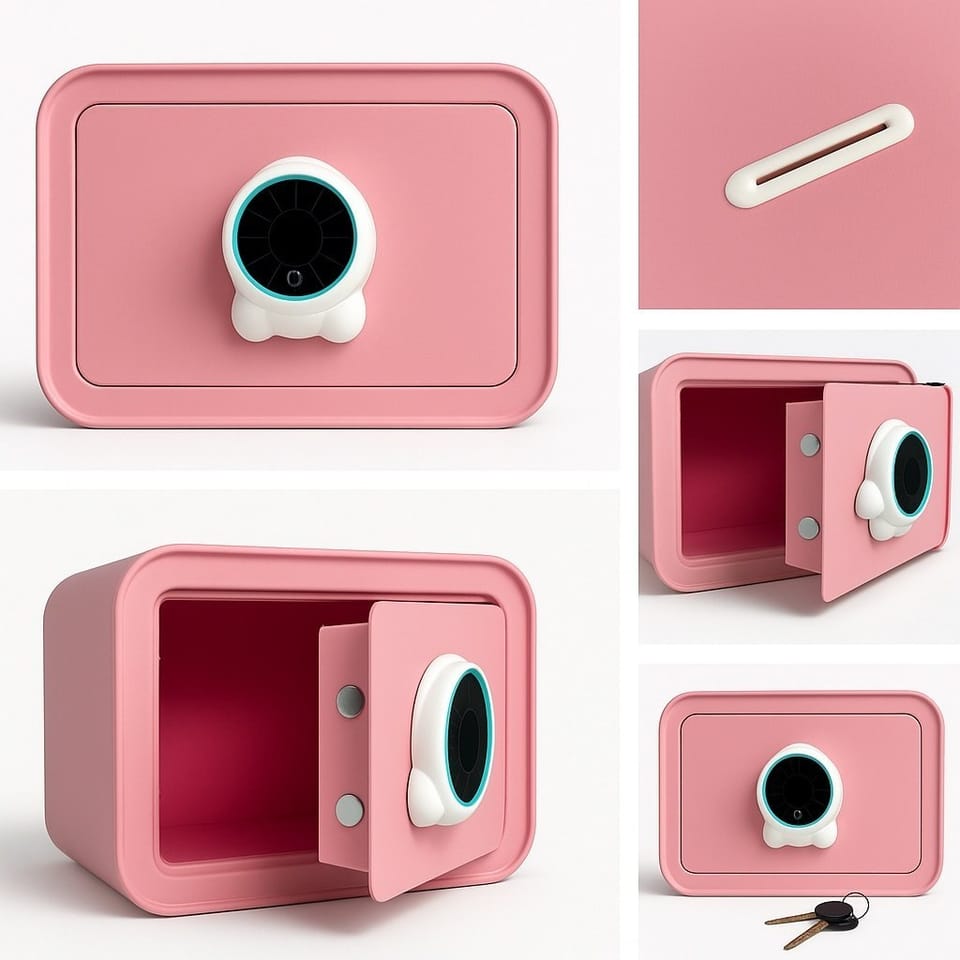 Stylowy i funkcjonalny sejf w kolorze różowym – idealny do biura, pokoju dziecka lub jako oryginalny prezent. Łączy w sobie bezpieczeństwo przechowywania z uroczym designem i dodatkowymi funkcjami!