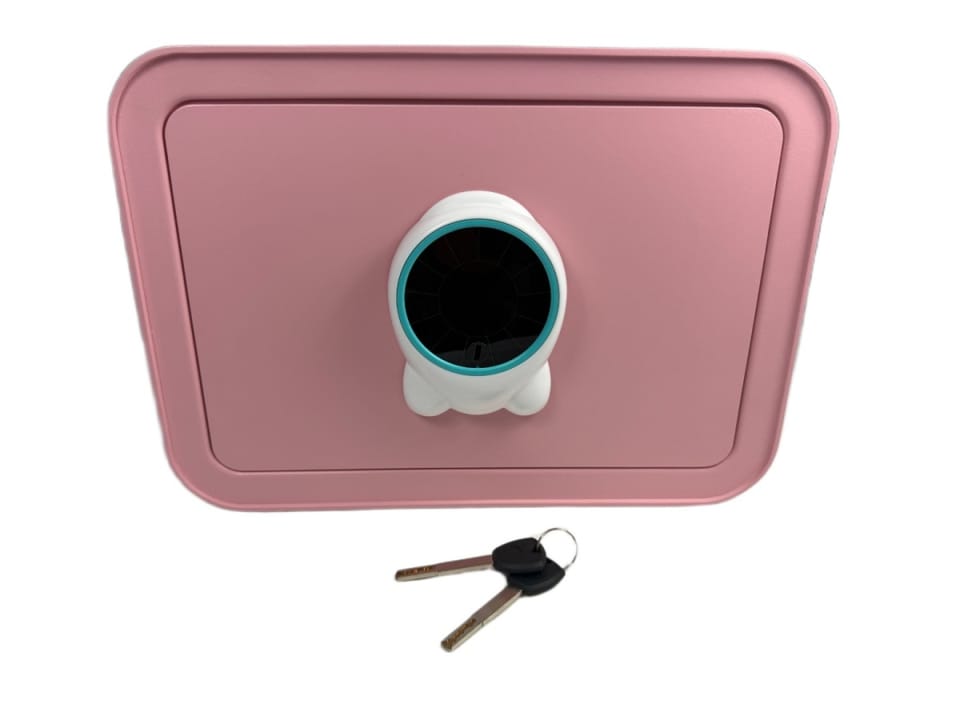 RÓŻOWY SEJF BIUROWY NA KOD I KLUCZ + SKARBONKA