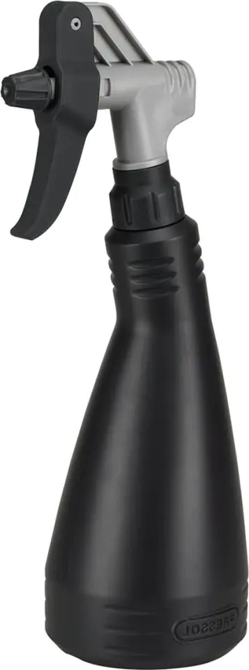 Wykonanie: Pojemnik z polietylenu z regulowaną dyszą z tworzywa sztucznego. Kąt rozpylania jest regulowany od mgiełki natryskowej do wiązki punktowej. Głowica rozpylająca z podwójnym skokiem, jedno naciśnięcie powoduje dwukrotne spryskanie. Elastyczny wąż ssący umożliwia prawie całkowite opróżnienie pod kątem roboczym od 0° do 180°.