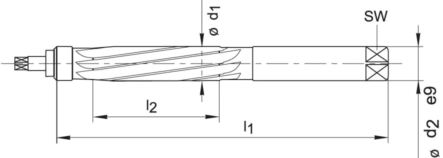 Wykonanie: DIN 859, kształt B, z chwytem cylindrycznym i zabierakiem czworokątnym.