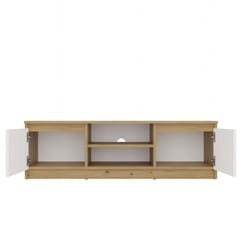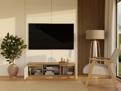 - Otwarta półka pozwala na wygodne ustawienie sprzętu RTV, a umieszczony w jej plecach otwór ułatwia dyskretny montaż okablowania.