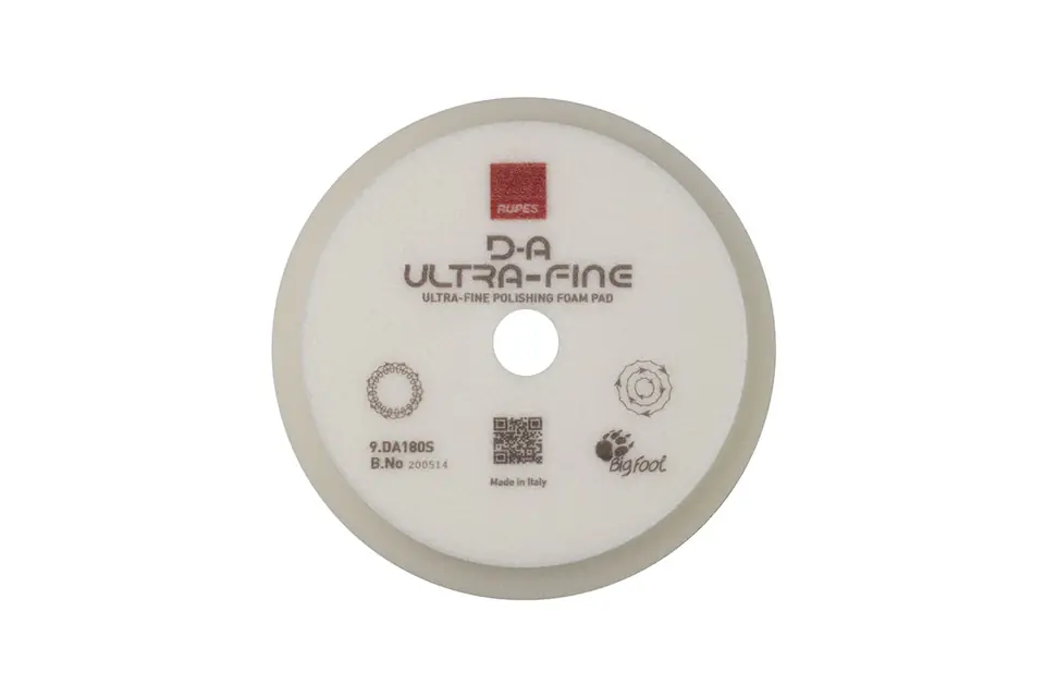 Rupes D-A Ultra-Fine – jest najmiększą gąbką z serii D-A przeznaczoną do wyciągania wysokiego połysku i polerowania bardzo miękkich lakierów podatnych na zamglenia. Gąbka została zaprojektowana do pracy zarówno na polerkach Dual Action, jak i Mille Tripple Action. Oprócz zastosowania zupełnie nowych materiałów, gąbki z serii D-A mają niższy profil w porównaniu do gąbek poprzedniej generacji. Pozwoliło to zapewnić lepszą stabilność polerki podczas pracy. Krawędź gąbki została zaokrąglona, zwiększając kontorlę prowadzenia urządzenia na przetłoczeniach. Gąbka najlepiej sprawdza się w połączeniu z pastą polerską Rupes Uno Pure.