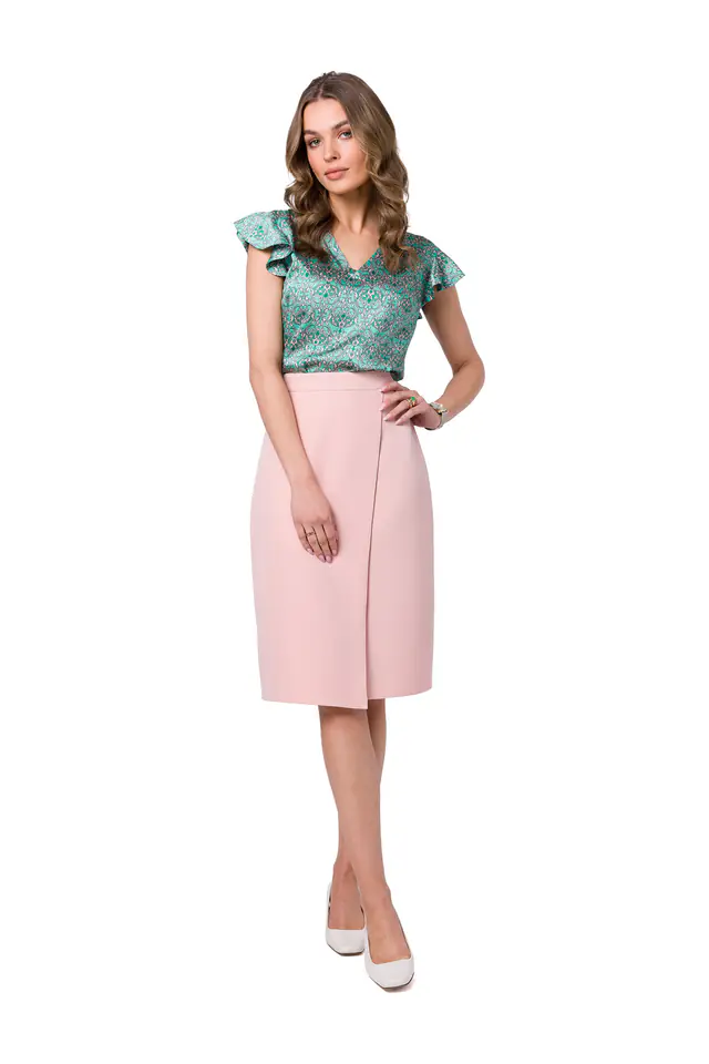 Klasyczna spódnica o fasonie litery A z motywem kopertowym.