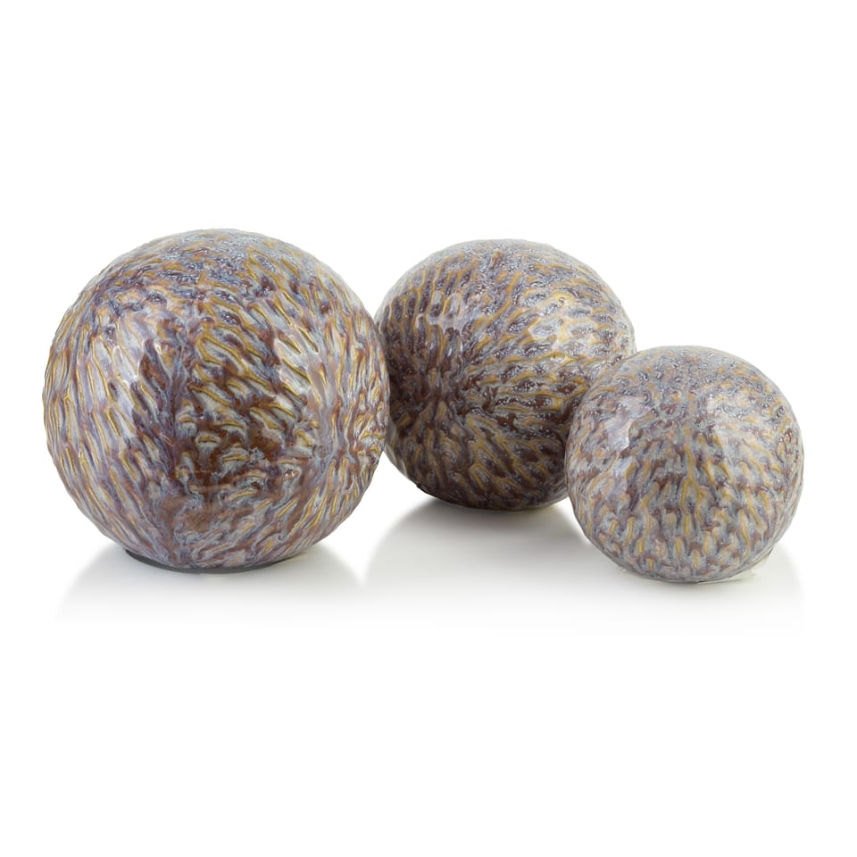SAGGIO PATTERN to stylowa kula dekoracyjna o wymiarach 12 x 12 x 11 cm, zachwycająca swoim wyjątkowym designem i niepowtarzalną fakturą. Wykonana z wysokiej jakości ceramiki, prezentuje się niezwykle elegancko w odcieniach fioletu, które dodają jej głębi i wyrafinowanego charakteru.Jej perfekcyjnie zaokrąglony kształt i dekoracyjna powierzchnia sprawiają, że jest doskonałym akcentem do wnętrz zarówno nowoczesnych, jak i klasycznych. Świetnie sprawdzi się jako ozdoba salonu, kuchni czy jadalni, wprowadzając do przestrzeni subtelny, artystyczny akcent. Może być eksponowana samodzielnie na półce, stole lub komodzie, jak również jako element większej kompozycji dekoracyjnej.Dzięki swojej uniwersalnej formie i unikalnej fakturze, kula SAGGIO PATTERN to idealny wybór dla osób poszukujących stylowych dodatków, które dodadzą wnętrzu elegancji i niebanalnego charakteru.wymiar: 12x12x11cmwaga:408g zapakowany jednostkowo w brown box