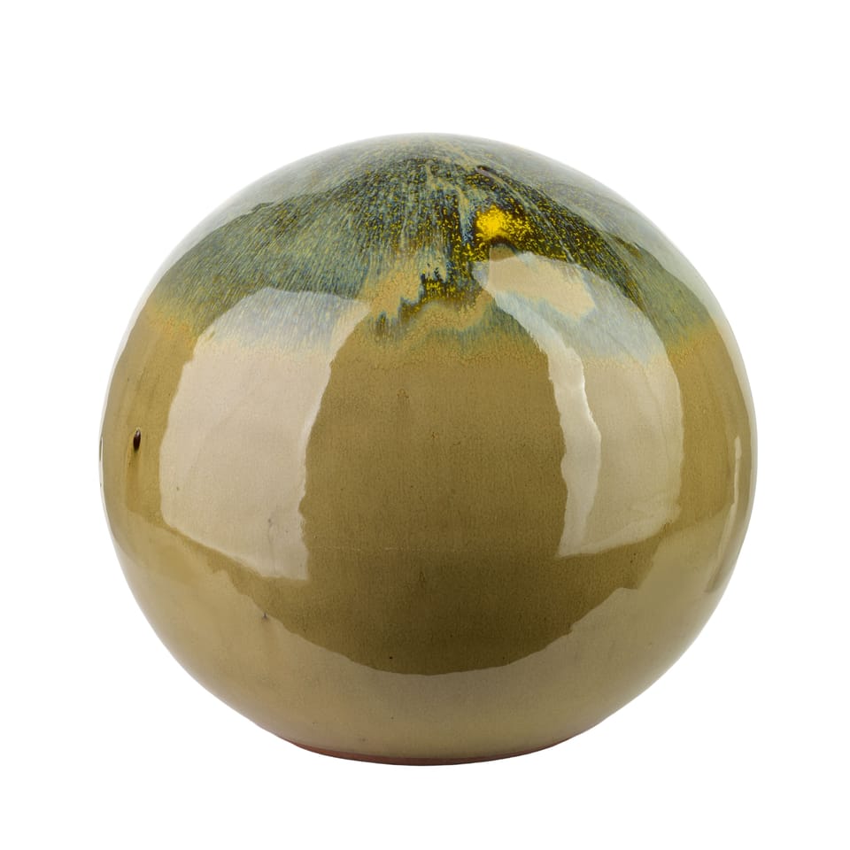 SAGGIO SUNSET w wersji o średnicy 25 cm to subtelna, ceramiczna kula o naturalnym zielonym odcieniu, która wprowadza do każdej przestrzeni odrobinę harmonii. Jej delikatnie połyskująca powierzchnia pięknie odbija światło, dzięki czemu prezentuje się elegancko zarówno wśród ogrodowej roślinności, jak i na tarasie czy w domowym wnętrzu.To dekoracja, która nie dominuje, lecz podkreśla charakter miejsca . sprawia, że ogród nabiera miękkiego, spokojnego akcentu, a aranżacje stają się bardziej spójne i dopracowane. Ceramiczne wykonanie nadaje jej solidność, jednak sprawia również, że kula nie jest odporna na mróz. W chłodniejszych miesiącach warto przenieść ją do wnętrza, by zachowała swój urok na kolejne sezony.SAGGIO SUNSET to drobny element, który potrafi odmienić przestrzeń, dodając jej elegancji i naturalnego wdzięku. Jeśli chcesz, mogę przygotować tak samo opisowy tekst dla innych rozmiarów lub modeli.