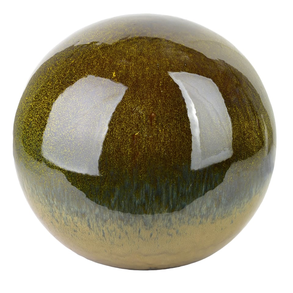 SAGGIO SUNSET to efektowna kula dekoracyjna o średnicy 40 cm, stworzona z trwałej ceramiki o pięknym, głębokim odcieniu zieleni. Jej gładka, połyskująca powierzchnia subtelnie odbija światło, dodając przestrzeni elegancji i harmonii. Świetnie prezentuje się: w ogrodach nowoczesnych i minimalistycznych, w aranżacjach naturalnych, wśród roślin i kamieni,na tarasie lub przy wejściu do domu jako stylowy element ozdobny.Kula jest odporna na warunki atmosferyczne, dzięki czemu może zdobić przestrzeń przez cały sezon. To idealny wybór dla osób, które chcą dodać swojej przestrzeni wyjątkowego charakteru za pomocą jednego, wyrazistego elementu.