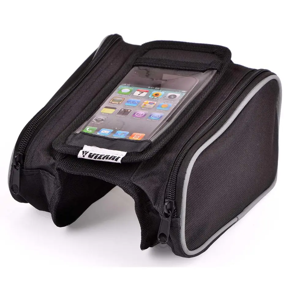 SAKWA TORBA ROWEROWA NA RAMĘ Z ETUI NA TELEFON będzie idealnym dodatkiem do Twojego roweru, dzięki któremu będziesz przemierzał nieznane Ci tereny bez strachu przed zabłądzeniem. Po zamontowaniu torby na ramie roweru w centralnym miejscu znajdzie się przeźroczysta kieszonka - etui, która może być np.: schowkiem na telefon. Kieszonka jest zamocowana do sakwy za pomocą rzepa, możesz ją w każdej chwili odpiąć. Dwie boczne kieszenie zamykane na zamek idealnie nadają się do przechowywania kluczy, dokumentów, niewielkiego portfela czy chusteczek itp. Kieszenie torby obszyte zostały odblaskowymi lamówkami, dzięki czemu będziesz bardziej widoczny na drodze. SAKWA TORBA ROWEROWA NA RAMĘ Z ETUI NA TELEFON została uszyta z trwałych materiałów, a każdy element wzmocniony 2 cm grubą taśmą co daje gwarancję trwałości przez wiele sezonów. Nie zwlekaj z zakupem, będziesz zadowolony!