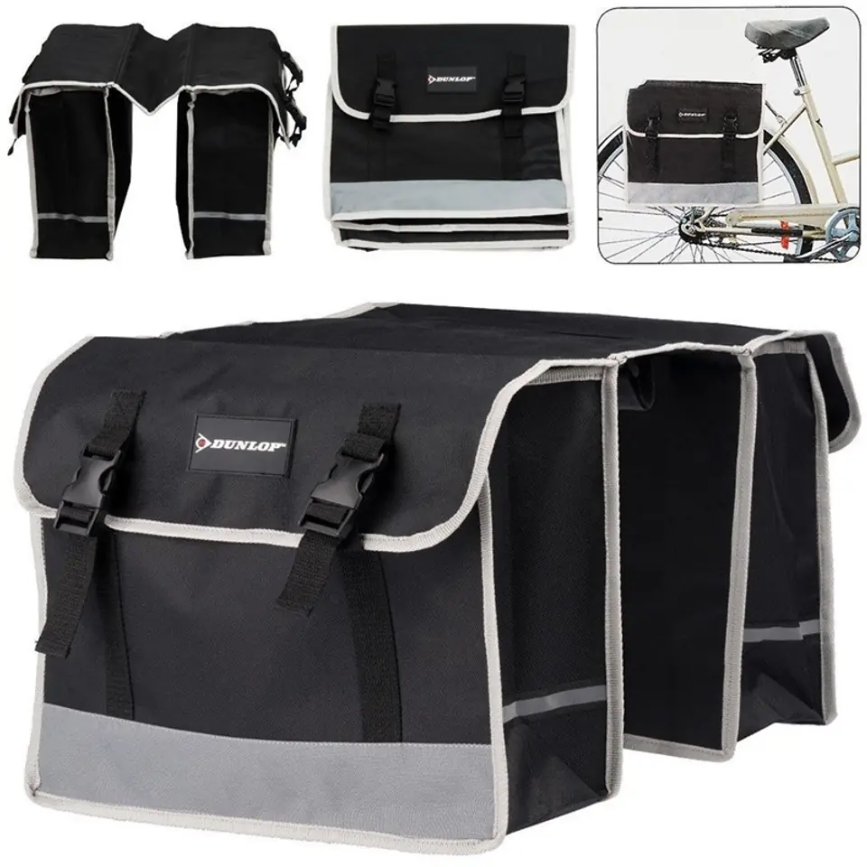 SAKWA TORBA ROWEROWA PODWÓJNA NA BAGAŻNIK DUNLOP 26L będzie idealnym dodatkiem do Twojego roweru. Po zamontowaniu jej na bagażniku roweru, będziesz mógł schować w niej wszystkie niezbędne rzeczy na wyprawę rowerową. Dwie boczne torby o pojemności 13 L każda, zamykane na 2 klamry drabinkowe, idealnie nadadzą się do przechowywania prowiantu, kurtki przeciwdeszczowej, koca, dokumentów, portfela itp. SAKWA TORBA ROWEROWA PODWÓJNA NA BAGAŻNIK DUNLOP 26L została uszyta z trwałych, wodoodpornych materiałów, a każdy element został wzmocniony grubą lamówką, co daje gwarancję trwałości przez wiele sezonów. Nie zwlekaj z zakupem, z pewnością będziesz zadowolony!
