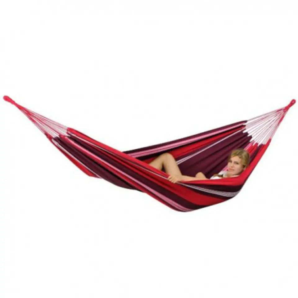 Salsa fuego - hamak AMAZONAS Amazonas Hängematten GmbH to Niemiecka firma produkująca oryginalne hamaki, huśtawki, nosidełka oraz stojaki już od 1995 roku. Charakterystyka Salsa to tradycyjny, piękny hamak do ogrodu lub na taras! Dzięki specjalnej tkaninie EllTex jest odporny na szkodliwe promienie UV oraz niesprzyjające warunki pogodowe a przy tym jest tak miły w dotyku jak bawełna. Ułóż się wygodnie w optymalnej pozycji w poprzek hamaka i bujaj się delikatnie. Do każdego hamaka Amazonas dołączony jest dedykowany mu woreczek. Hamak można zawiesić na trzy możliwe sposoby: - hamak do zawieszenia na drzewie (mocowanie na linie Amazonas Smartrope) - hamak do zawieszenia o scianę (mocowanie na hakach Easy+) - hamak do zawieszenia na stelażu Akcesoria do zawieszenia hamaka (nie są w zestawie z hamakiem): - Lina Amazonas Smartrope - Hak Amazonas Easy+ Polecamy montowanie hamaków SALSA na stelażach Olymp i Sumo Rockstone. Parametry techniczne: * Skład: 100% bawełna * Powierzchnia siedzenia: około 210 x 140 cm * Długość całkowita: 310 cm * Waga produktu: około 1,4 kg * Maksymalne obciążenie: około 150 kg * Skład: 100% bawełna AZ-1951000