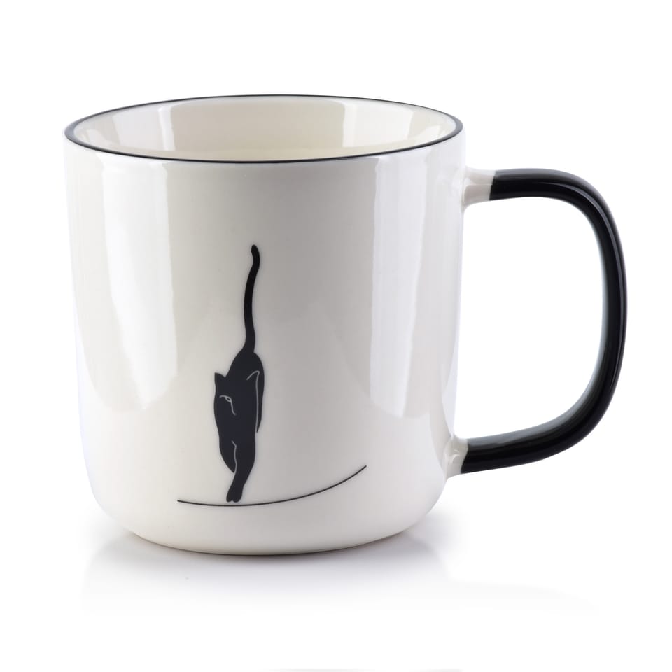 Kubek porcelanowy z serii SAMMY CAT marki AFFEKDESIGN by MONDEX. Ponadczasowy i nowoczesny kubek w kolorystycze czarno- białej, który świetnie sprawdzi w każdej kuchni i jadalni. Kubek idealnie nada się na poranną kawę lub wieczorną herbatę. Można skompletować sobie zestaw jednego koloru, ale warto pamiętać, że mix kolorystyczny kubków doda im jeszcze więcej uroku. Idealny kubek dla kociarzy. Nadaje się do mycia w zmywarce oraz w kuchence mikrofalowej. Pojemność: 360ml Wymiary kubka: wysokość: 9cm średnica z uchem:1 średnica góra: 8.7 średnica dół: 8cm Zapakowany w ozdobny czarny kartonik z logo o wymiarach: 12x9xh9,5cm