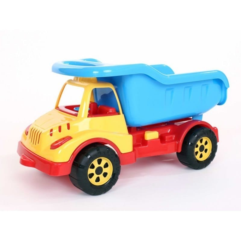 Samochód wywrotka Ciekawy samochód ciężarowy z kolorowego plastiku do zabawy zarówno w domu jak i na podwórku. Posiada wiele intrygujących elementów, które zaciekawią każde dziecko takich jak mini kierownica ciekawie zaprojektowana kabina samochodu oraz odchylana wywrotka. Zabawkę wykonano z oryginalnych tworzyw oraz barwników niezawierających związków metali ciężkich, spełnia wszystkie warunki bezpieczeństwa. Posiada certyfikat CE. Wymiary zabawki: długość: 51cm szerokość: 25 cm wysokość: 28 cm