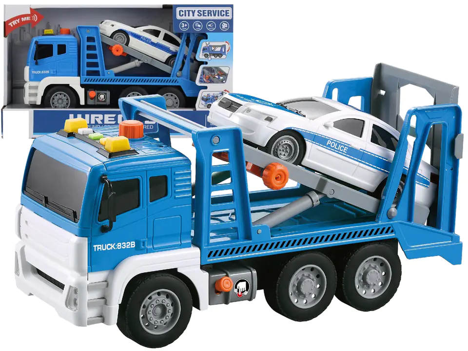 Samochód Laweta Niebieska Pomoc Drogowa Autko Policja Dźwięki Światła 1:16
