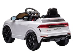 Dziecięca wersja Audi posiada napęd 2x45W, który w połączeniu z akumulatorem o mocy 12V7Ah umożliwia zabawę w prędkości od 3 do 5 km/h. Co więcej, model wyposażony jest w automatyczną skrzynię biegów z trzema prędkościami, przez co każdy mały kierowca dostosuje szybkość pojazdu do swoich możliwości. Dużą zaletą prezentowanego Audi RS Q8 dla dzieci jest wykonanie modelu z wysokogatunkowych materiałów najwyższej jakości, odpowiadających za trwałość i długą żywotność autka. Wszelkie elementy pozbawione są ostrych zakończeń, co jest gwarancją bezpieczeństwa płynącego z zabawy. Zminiaturyzowana wersja autka Audi dla dzieci osadzona jest na bieżnikowanych kołach EVA, które zostały wyprodukowane z tworzywa sztucznego, umożliwiającego komfortową i wygodną jazdę na nawierzchniach różnego typu. Jazdę licencjonowanym Audi RS na akumulator uprzyjemniają także dodatki podnoszące poziom bezpieczeństwa, takie jak światła LED, zwiększające widoczność , oraz lusterka.