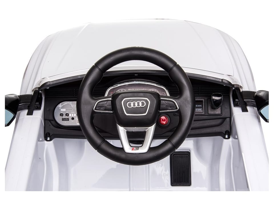 Zminiaturyzowana wersja sportowego Audi RS Q8 na akumulator kryje w swoim wnętrzu miękki, wygodny fotel, który został wykonany z ekoskóry. Jego wymiary gwarantują komfortową i bezpieczną jazdę, ponieważ połączono go z pasem bezpieczeństwa. Kierownica z klaksonem i melodiami umieszczona jest tuż obok deski rozdzielczej, na której znajdują się imitacje wskaźników i zegarów, a panel muzyczny z odtwarzaczem MP3. Wystarczy wgrać wybrane piosenki na odtwarzacz lub pendrive, by kilkuletni kierowca mógł wczuć się w zabawę, podróżując ze swymi ulubionymi melodiami w tle. Dziecięcy pojazd akumulatorowy jest bardzo prosty w obsłudze — by rozpocząć jazdę, należy wcisnąć przycisk startu umieszczony obok kierownicy, a następnie użyć pedała gazu. Z łatwością poradzi sobie z tym każdy mały kierowca.
