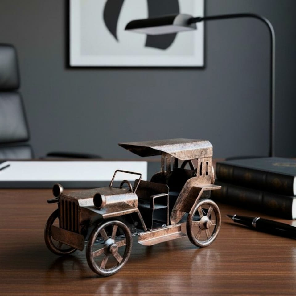 Samochód retro - model dekoracyjny vintage - NC1737 Dlaczego warto? ?Autentyczny Styl Vintage: Samochód jest celowo postarzany, co nadaje mu unikalny, retro wygląd. Doskonale sprawdzi się jako element dekoracyjny w gabinecie, biurze, salonie czy pokoju nastolatka. ?Wysoka Jakość Materiałów: Model został wykonany w całości z metalu, co zapewnia mu solidność i trwałość. ?Idealny Prezent: To doskonały pomysł na prezent dla miłośnika motoryzacji, kolekcjonera, a także dla każdego, kto ceni sobie oryginalne dekoracje. ?Uniwersalna Dekoracja: Dzięki swoim wymiarom model łatwo znajdzie swoje miejsce na biurku, półce czy komodzie, dodając wnętrzu wyjątkowego charakteru. Samochód Retro NC1737 - Specyfikacja: ?Wymiary: 26 x 13 x 16 cm ?Materiał: Metal ?Styl: Retro, vintage ?Wykończenie: Celowo postarzany ?Przeznaczenie: Dekoracja, prezent dla miłośnika motoryzacji
