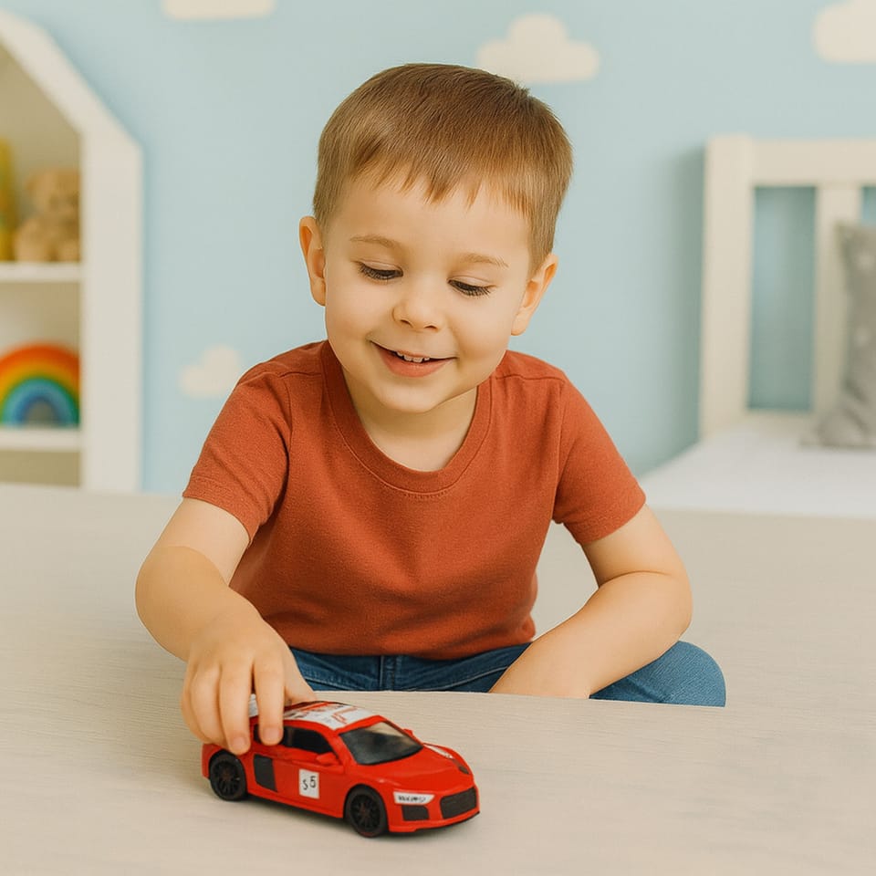 Zastosowany napęd pull back sprawia, że autko po pociągnięciu do tyłu szybko rusza do przodu, dając dziecku możliwość przeprowadzania emocjonujących wyścigów oraz zabaw na różnych powierzchniach. Dzięki kompaktowym rozmiarom model z łatwością mieści się w dłoni dziecka, a jego lekka, lecz stabilna konstrukcja pozwala wygodnie bawić się zarówno w domu, jak i poza nim. Idealna jako prezent dla małych fanów motoryzacji, zarówno do samodzielnej zabawy, jak i jako część kolekcji modeli samochodów.
