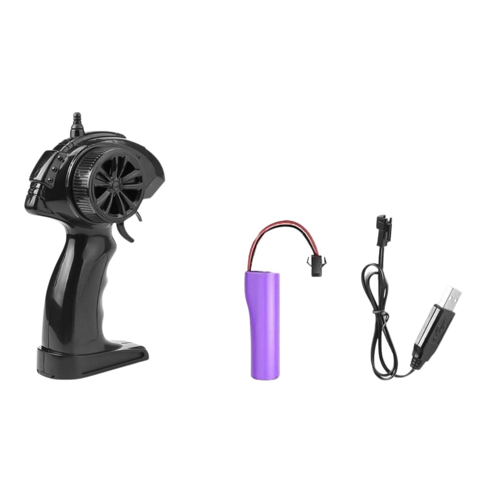 Samochód zasilany jest jednym akumulatorem litowym 3,7 V 500mAh, który zapewnia do 20 minut jazdy na jednym ładowaniu. Ładowanie odbywa się za pomocą kabla USB, a dioda sygnalizacyjna informuje o statusie ładowania. Ergonomiczny pilot pistoletowy działający w technologii 2,4 GHz gwarantuje stabilne połączenie oraz precyzyjne sterowanie bez zakłóceń.