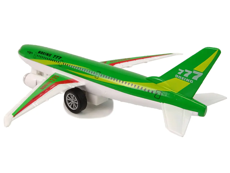 Gratka dla młodych fanów lotnictwa. Każdy maluch marzy, by być pilotem samolotu, te podniebne maszyny budzą podziw i zachwycają każdego małego odkrywce świata. Przedstawiamy zielony samolot Boeing 777 z czerwonymi elementami. Dopracowany wygląd zabawki, przypomina jej realny odpowiednik, z pewnością sprawi, że rodzeństwo i rodzice z chęcią włączą się do wspólnej rozrywki. Ten model nie tylko posłuży dziecku do zabawy, ale i do ozdoby pokoju.