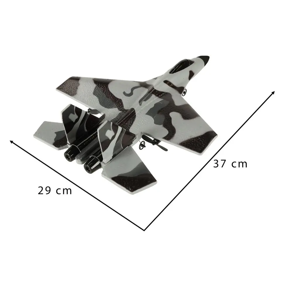 - samolot: akumulator 3.7V, 220mAh (w zestawie) - pilot: 3 baterie AA (brak w zestawie)