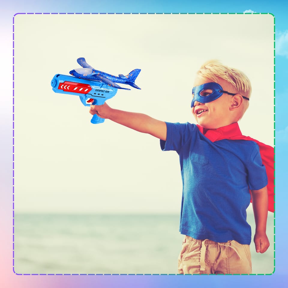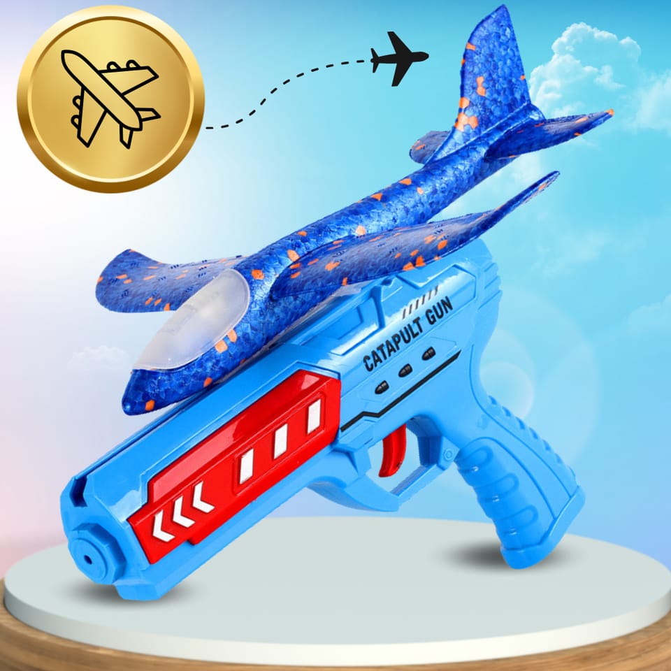 - Spektakularne loty z wyrzutnią – Samolot może być wypuszczany w przestworza za pomocą pistoletu – wyrzutni, załączonej w zestawie. Wystarczy umieścić samolot w odpowiednim miejscu, naciągnąć i strzelić! Dzięki temu poleci zdecydowanie dalej i bardziej spektakularnie niż puszczany z ręki. Pistolet wykonany z mocnego tworzywa sztucznego. ??