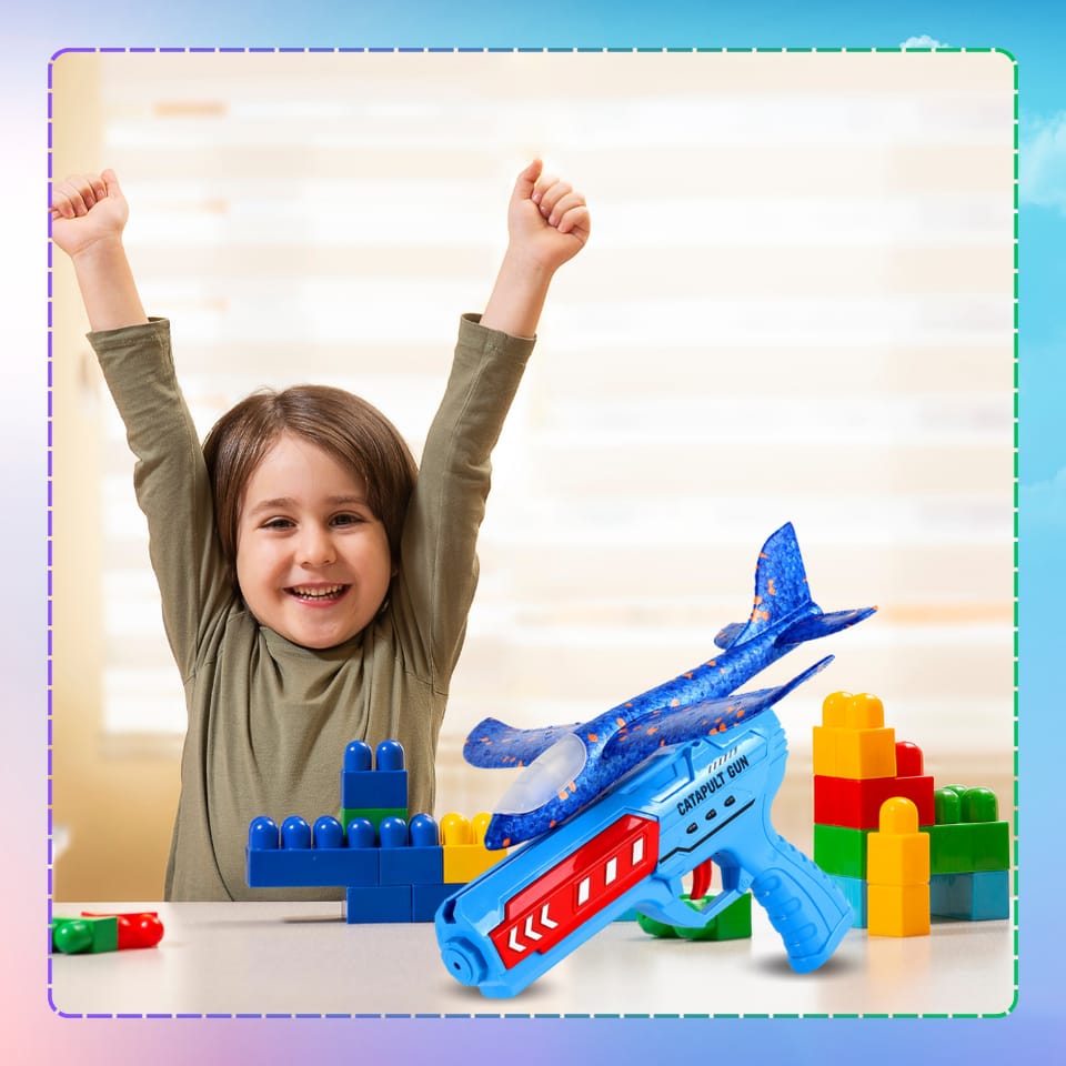 ⭐SAMOLOT Z WYRZUTNIĄ SZYBOWIEC STYROPIAN RZUTKA ZABAWKA PISTOLET