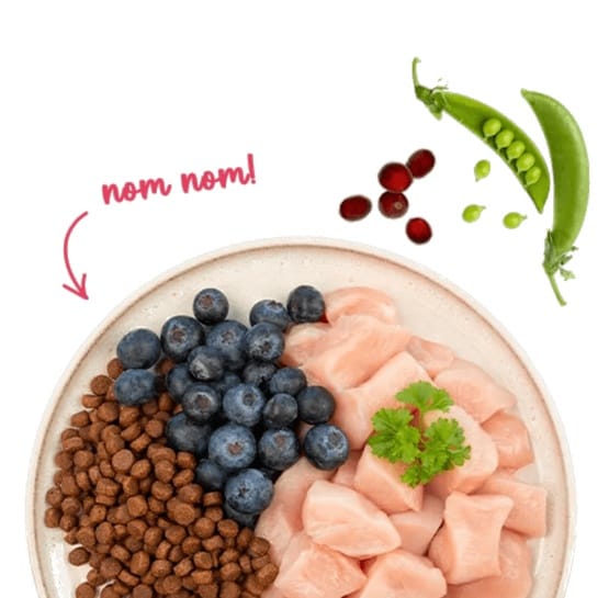 Składniki:świeże mięso z kurczaka (25%), kukurydza, jęczmień, białko drobiowe (suszone), tłuszcz zwierzęcy, białko kukurydziane, hydrolizat białka, siemię lniane, węglan wapnia, ryż (1%), mączka wątrobowa, groch (suszony, 0,4%), borówka brusznica (suszona 0,1%), borówka (suszone, 0,1%), suszona pietruszka (0,1%), drożdże (suszone 0,1%), chlorek potasu, kwiaty nagietka (suszone, 0,05%).Analiza:Wilgotność 10,0%, białko 31,0%, zawartość tłuszczu 16,0%, włókno surowe 2,0%, popiół surowy 6,9%, fosfor 1,0%, wapń 1,15%, sód 0,4%, potas 0,5%, magnez 0,07%.Dawkowanie: