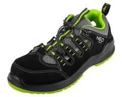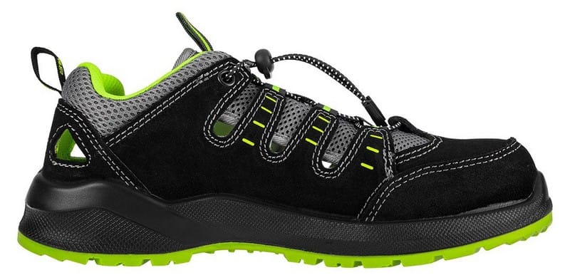 Sandały robocze, S1P SR, cholewka: skóra zamszowa + materiał tekstylny, wyściółka: dzianina "siatka", podeszwa: PU/PU, wkładka: EVA, podnosek: stalowy, wkładka antyprzebiciowa: stalowa, but wykonany w kategorii S1P SR (SR- odporność na poślizg na podłożu ceramicznym pokrytym roztworem laurylosiarczanu sodu (SLS) i na podłożu ze stali pokrytym glicerolem), antypoślizgowa podeszwa z systemem absorbującym wstrząsy, zabudowana pięta, wkładka antyelektrostatyczna, oddychająca cholewka, certyfikat CE zgodnie z normą EN ISO 20345, rozmiar 44