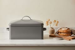 Chlebak (pojemnik na chleb) SANDY VINTAGE marki Cookini by MONDEX. Chlebak o futurystycznym, nowoczesnym kształcie w klasycznej i uniwersalnej kolorystyce. Korpus produktu został wykonany z solidnego i trwałego metalu w matowym wykończeniu. Posiada wygodną metalową pokrywę z również metalową rączką. Należy przecierać wilgotną szmatką z delikatnym detergentem lub używać środków doczyszczenia metalu. Produkt zapakowany z ozdobne opakowanie z zabezpieczeniami. Idealny jako prezent na parapetówkę. chlebak:dł39cm z uchwytami szerokość 18cm wysokość z pokrywką 21cm (z uchwytem) opakowanie jednostkowe color box 19,5x39,5x18cm