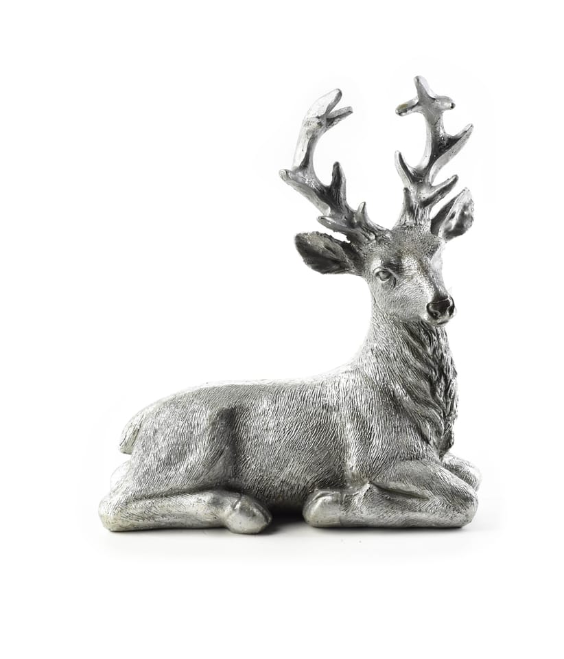 Srebrna figura jelenia z serii SANTA LILA marki MONDEX since 1986. Odpoczywający leżący jeleń w złotym odcieniu sprawi, iż każde wnętrze nabierze świątecznego nastroju. Wykonana jest z poliresinu. h18x15x7cm waga: 330g zapakowany jednostkowo w folię:h20x19x8cm pakowanie 4szt/karton inner karton zbiorczy 24szt