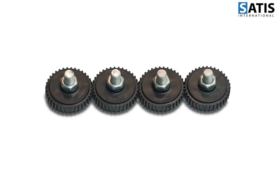 Wkręcane gumowe stopy służą do ustawienia szalki w poziomie, stabilizacji i regulacji wysokości. Pasują do pomostów magazynowych marki Satis. Gwint rozmiar M12. Charakteryzują się wysoką jakością wykonania.