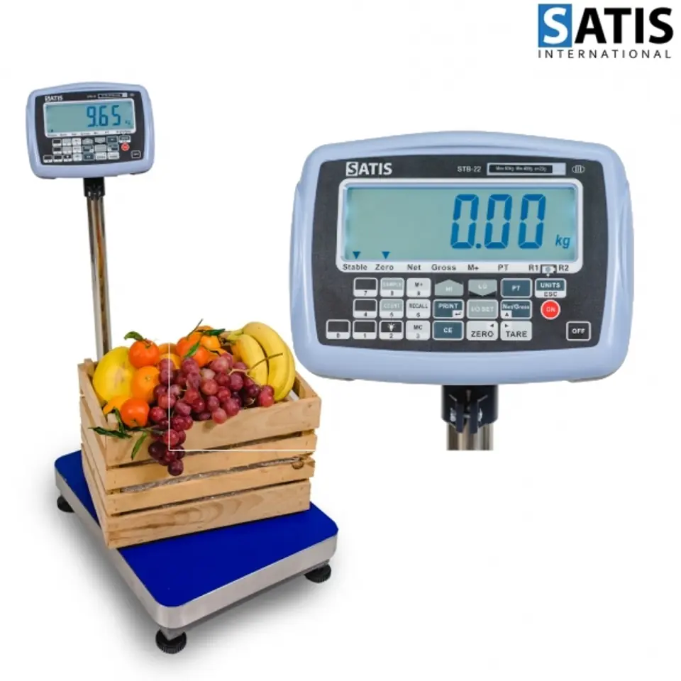 Pomost magazynowy 40x50cm firmy SATIS w zestawie z miernikiem STB-22 jest przeznaczony m.in. do ważenia towarów w magazynach, na bazarach, w halach produkcyjnych, w centrach logistycznych oraz podczas kontroli dostaw. Miernik posiada dokumentację tzw. OIML, dzięki czemu urządzenie można poddać legalizacji.