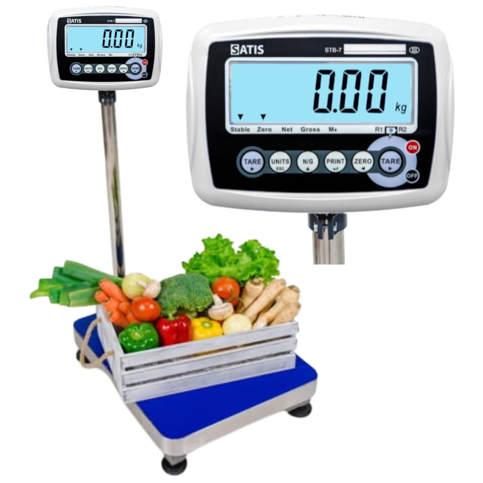 Pomost magazynowy 40x50cm firmy SATIS w zestawie z miernikiem STB-7 jest przeznaczony m.in. do ważenia towarów w magazynach, na bazarach, w halach produkcyjnych, w centrach logistycznych oraz podczas kontroli dostaw. Miernik posiada dokumentację tzw. OIML, dzięki czemu urządzenie można poddać legalizacji.