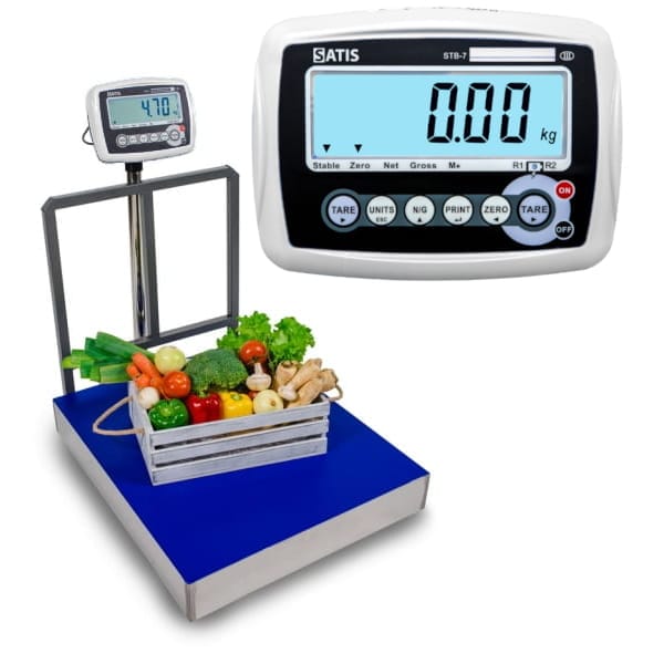 Pomost magazynowy 42x52cm firmy SATIS w zestawie z miernikiem STB-7 jest przeznaczony m.in. do ważenia towarów w magazynach, na bazarach, w halach produkcyjnych, w centrach logistycznych oraz podczas kontroli dostaw. Miernik posiada dokumentację tzw. OIML, dzięki czemu urządzenie można poddać legalizacji. Solidne oparcie sprawdzi się podczas ważenia worków lub innych niestabilnych towarów, dzięki czemu ważone przedmioty mają stateczne i wygodne ułożenie.