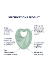 Satisfyer Perfect Pair 3 wielofunkcyjny wibrator na palec Green (P1)4061504043753Jeśli Twoje serce potrzebuje wsparcia, Satisfyer Perfect Pair 3 przyjdzie na ratunek! Wszechstronny wibrator nie tylko otula Cię wibracjami, kiedy jest nałożony na palec, ale także sprawdzi się jako pierścień na penisa.Solo lub z niąWibrator 2 w 1 o minimalistycznym kształcie serca dba o wybraną przez Ciebie strefę erogenną jako wibrator na palec, ale jest również gotowy do użycia w dowolnym momencie jako pierścień na penisa: elastyczna silikonowa nakładka z przyjemnością będzie stymulować Twoją najlepszą część! Dzięki mocnemu, ale cichemu silnikowi możesz spodziewać się szczególnie intensywnych i silnych wibracji - 12 trybów zapewnia orzeźwiające podniecenie. Specjalna konstrukcja wibratora nie tylko wygląda uroczo: kiedy jest używany jako pierścień na penisa, do jąder również dociera dużo wibracji, a dodatkowo możesz go użyć, aby uszczęśliwić gorące miejsca partnerki. Czego chcieć więcej!Seksowny i wielofunkcyjnySatisfyer Perfect Pair 3 pokryty jest przyjaznym dla ciała silikonem i dlatego jest wyjątkowo delikatny dla skóry. Ponadto to wszechstronne urządzenie wodoodporne (IPX7) można łatwo czyścić ciepłą wodą z mydłem i brać pod prysznic lub do wanny. Woda potęguje wibracje i sprawia, że Twoja samotna przygoda będzie jeszcze bardziej zmysłowa i przyjemna - sprawdź sama!Daj mu moc!Twój Satisfyer jest wyposażony we wbudowany akumulator, dzięki czemu można go ładować w sposób przyjazny dla środowiska. Dołączony magnetyczny kabel ładujący USB można w razie potrzeby uzupełnić standardową wtyczką sieciową.Materiał i pielęgnacjaWodoodporny (IPX7) Satisfyer pokryty jest jedwabiście gładkim silikonem klasy medycznej, który jest wyjątkowo śliski i szybko nagrzewa się pod wpływem ciepła ciała. Produkt można łatwo czyścić pod letnią wodą z odrobiną mydła. Dzięki niewielkiej ilości dezynfekującego środka do czyszczenia gadżetów intymnych możesz zapewnić szczególnie dokładną higienę. Aby uzyskać maksymalną przyjemność, zawsze używaj wibratora z lubrykantem na bazie wody.Cechy:• 12 trybów wibracji• silikon przyjazny dla ciała• waga: 53g• długość: 63mm• szerokość: 67mm• wysokość: 31mm• kolor: miętowy