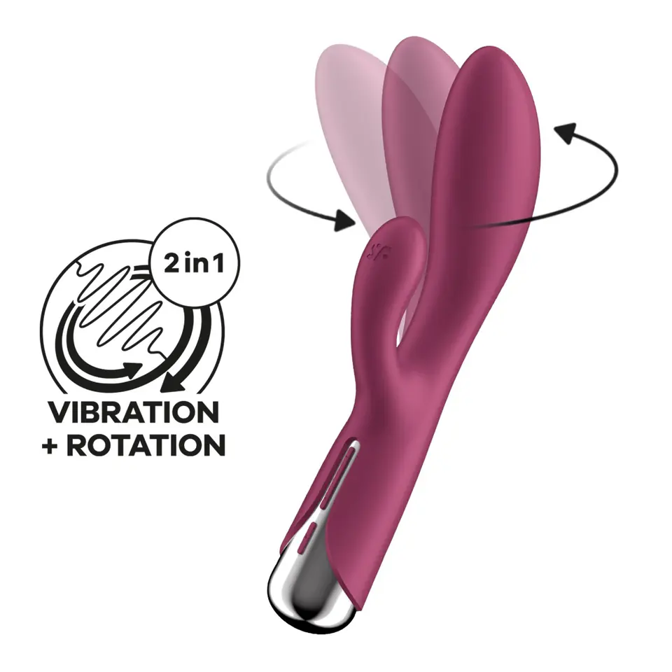 Ten rodzaj rotacji na pewno przyspieszy bicie Twojego serca: Satisfyer Spinning Rabbit 1 to wibrator króliczek, który pieszcząc łechtaczkę silnymi wibracjami oraz punkt G wibracjami i rotacją, dostarcza podwójną dawkę przyjemności. Przygotuj się na to nowe i ekscytujące doświadczenie!
