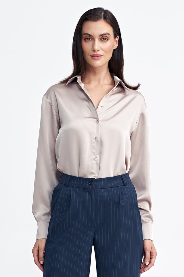 Satynowa koszula body - beż - K80 kolor beż, rozmiar 42
