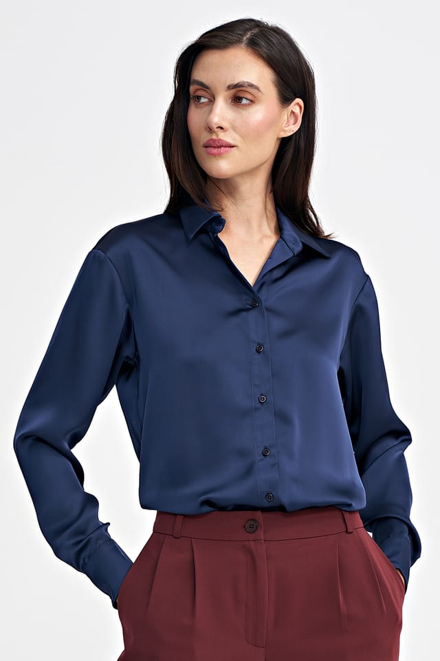 Krój regular. Materiał z satynowym efektem. Klasyczny kołnierzyk. Długi rękaw zakończony mankietem. Zapięcie na guziki z przodu i zatrzaski w kroku. Elastyczny materiał majtek. Skład: 96% poliester, 4% elastan Modelka na zdjęciu ma 176 cm wzrostu i ma sobie rozmiar 36.