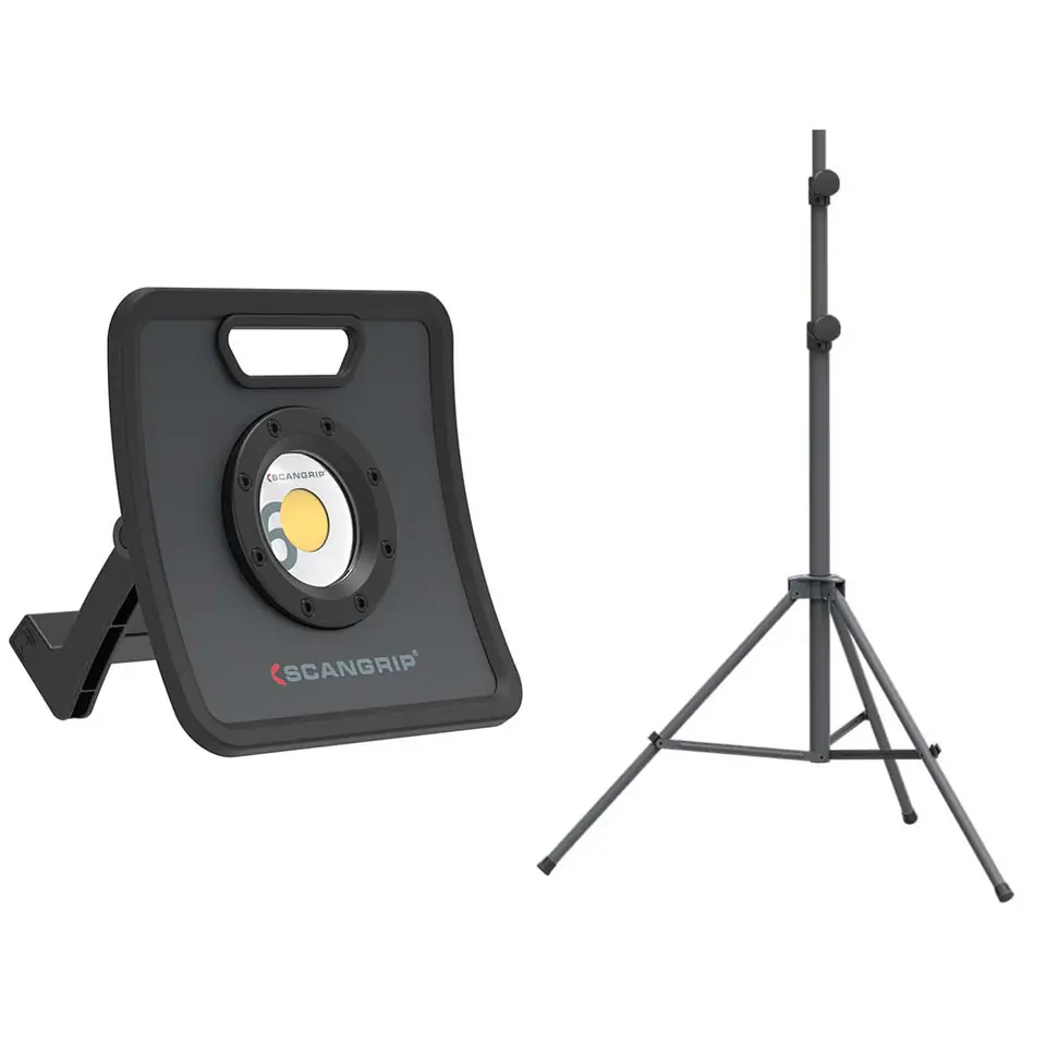 Stojak Scangrip – niezbędne wyposażenie zarówno warsztatu samochodowego jak i lakierniczego. Umożliwia ustawienie lampy w wybranym miejscu w celu odpowiedniego oświetlenia miejsca pracy. Stojak Scangrip ma regulowaną wysokość (od zaledwie 1,35 m do 3 m), co zapewnia pełną elastyczność ustawienia lampy na wymaganym poziomie. Zamocowaną na stojaku lampę można przechylić tak, aby światło padało pod optymalnym kątem. Stojak wykonany jest z wytrzymałej stali (maks. obciążenie 10 kg) malowanej proszkowo, a spawana stalowa nakładka montażowa (10 mm) zapewnia trwałość uniwersalnego statywu. Dzięki solidnej konstrukcji (waga 6 kg) Stojak Scangrip jest stabilny nawet po rozsunięciu na pełną wysokość. W celu zwiększenia bezpieczeństwa kabel lampy można przymocować zaciskami umieszczonymi na każdej z nóg stojaka.
