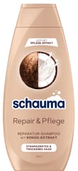 Schauma Repair & Pflege to regenerujący szampon do włosów suchych i zniszczonych, który skutecznie odbudowuje ich strukturę i przywraca zdrowy wygląd. Dzięki formule z wyciągiem kokosowym intensywnie odżywia włosy od nasady aż po same końcówki.